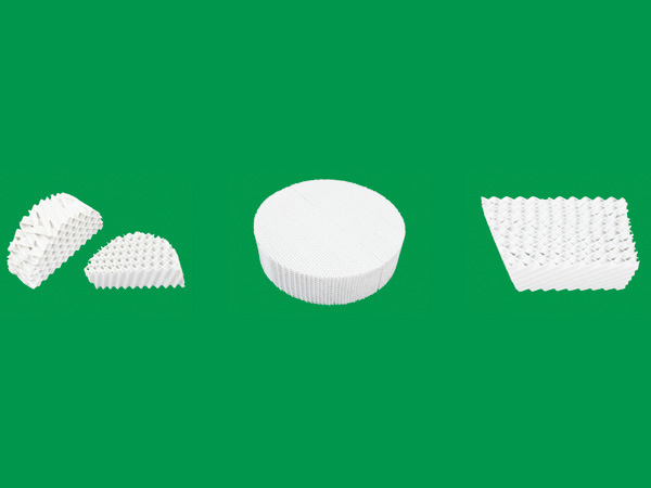 陶瓷規(guī)整填料與散堆填料相比具有效率高,降壓低,處理量大,持液量小,放大效應(yīng)不明顯,操作彈性大等一系列優(yōu)點(diǎn)。它由許多具有相同幾何形狀的填料單元體構(gòu)成。陶瓷規(guī)整波紋